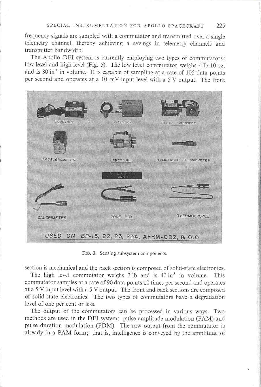 The recent advent of space exploration and manned space flight has provided aerospace technologists and engineers with many challenging problems in instrumentation development and application Capabilities for accurate determination of inflight spacecraft performance and external environmental parameters have steadily increased from early missile flights, which required only a few relatively simple measurements, to present-day programs such as Apollo, which require in excess of several hundred independent and individual measurements.