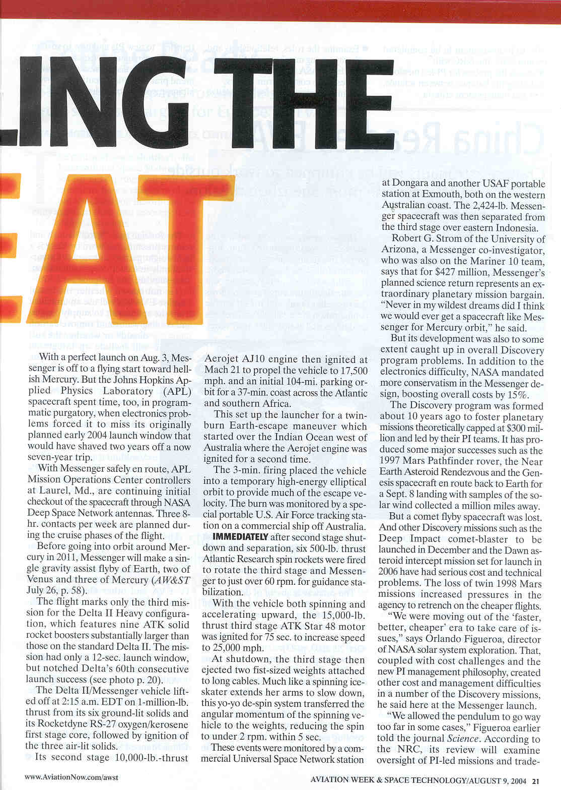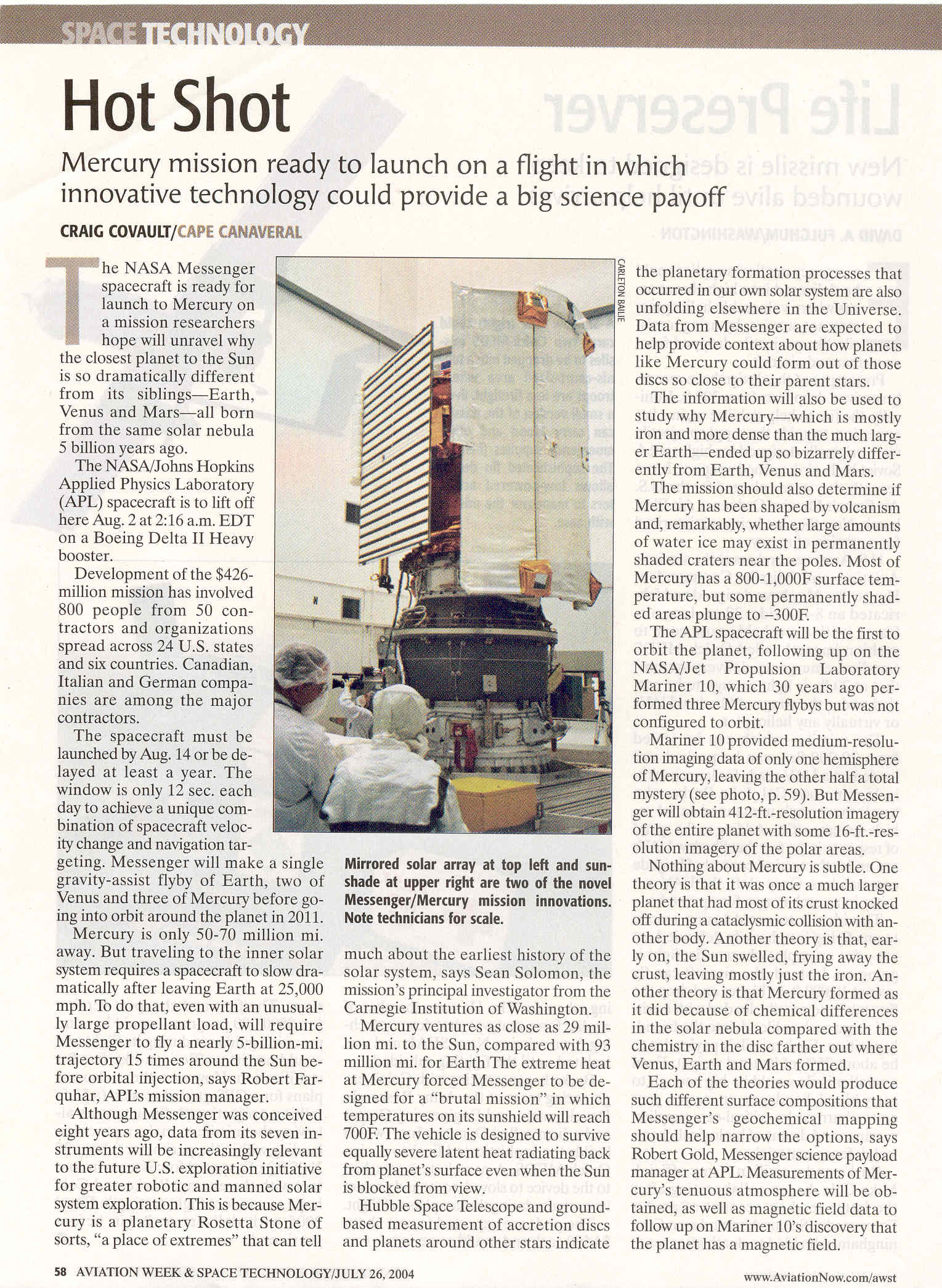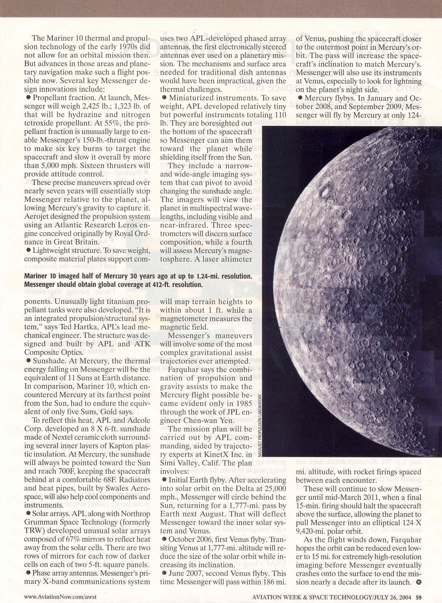 MESSENGER Mercury Laser Altimeter in Aerospace America's "2003: The Year in Review"
