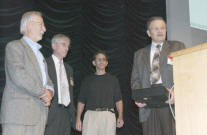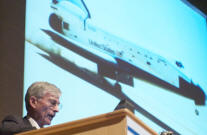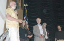 Rich Katz, of the NASA Office of Logic Design, presents Captain Young with